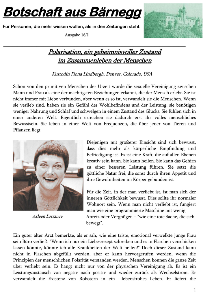 Artikelverzeichnis der "Botschaft aus Bärnegg"